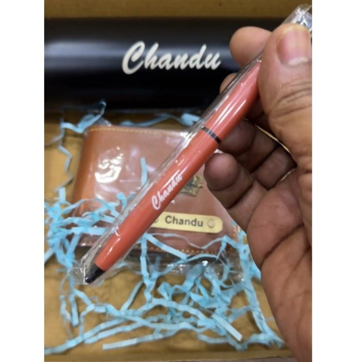 Personalized Gift Set for Him – Name Engraved Wallet, Bottle & Pen